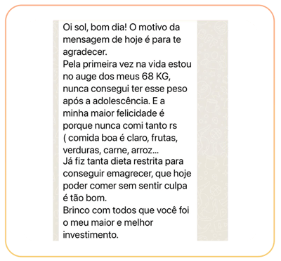 Você terá acesso a nossa comunidade no Whatsapp onde poderá tirar dúvidas e compartilhar a sua jornada de desinflamação e emagrecimento com outras alunas.